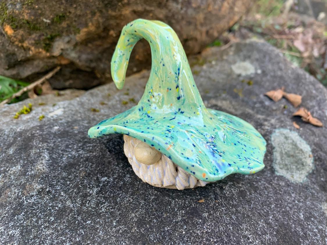 Delfred the Gnome measures in at just over 3" tall, and is one-of-a-kind. At Plot Twist Pottery, we make small batches of similar styles crafted by hand using local clay. Our pottery studio is located on a century-old farmstead in Oregon’s Willamette Valley.